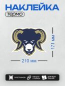 Дизайн: Стилизованный логотип головы барана в синих и золотых тонах. — идеально подходит для декора и восстановления одежды.