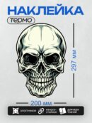 Дизайн: Стилизованный череп в мультяшном стиле с четкими линиями и контрастными тенями. — идеально подходит для декора и восстановления одежды.