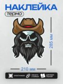Термонаклейка на одежду DTF / Стилизованный череп в ковбойской шляпе с бородой.