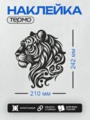 Дизайн: Стилизованная голова тигра в tribal-дизайне, черно-белая. — идеально подходит для декора и восстановления одежды.