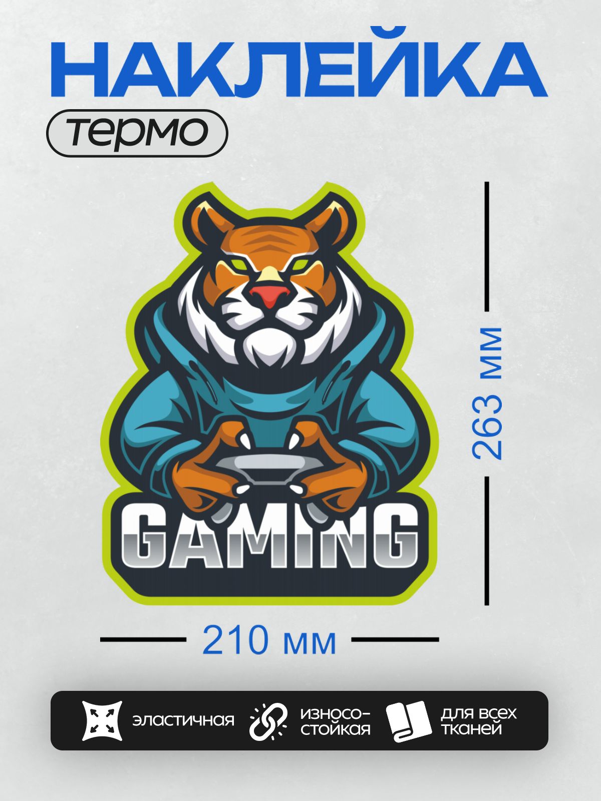 Дизайн: Стилизованный тигр в худи с геймерским джойстиком. — идеально подходит для декора и восстановления одежды.