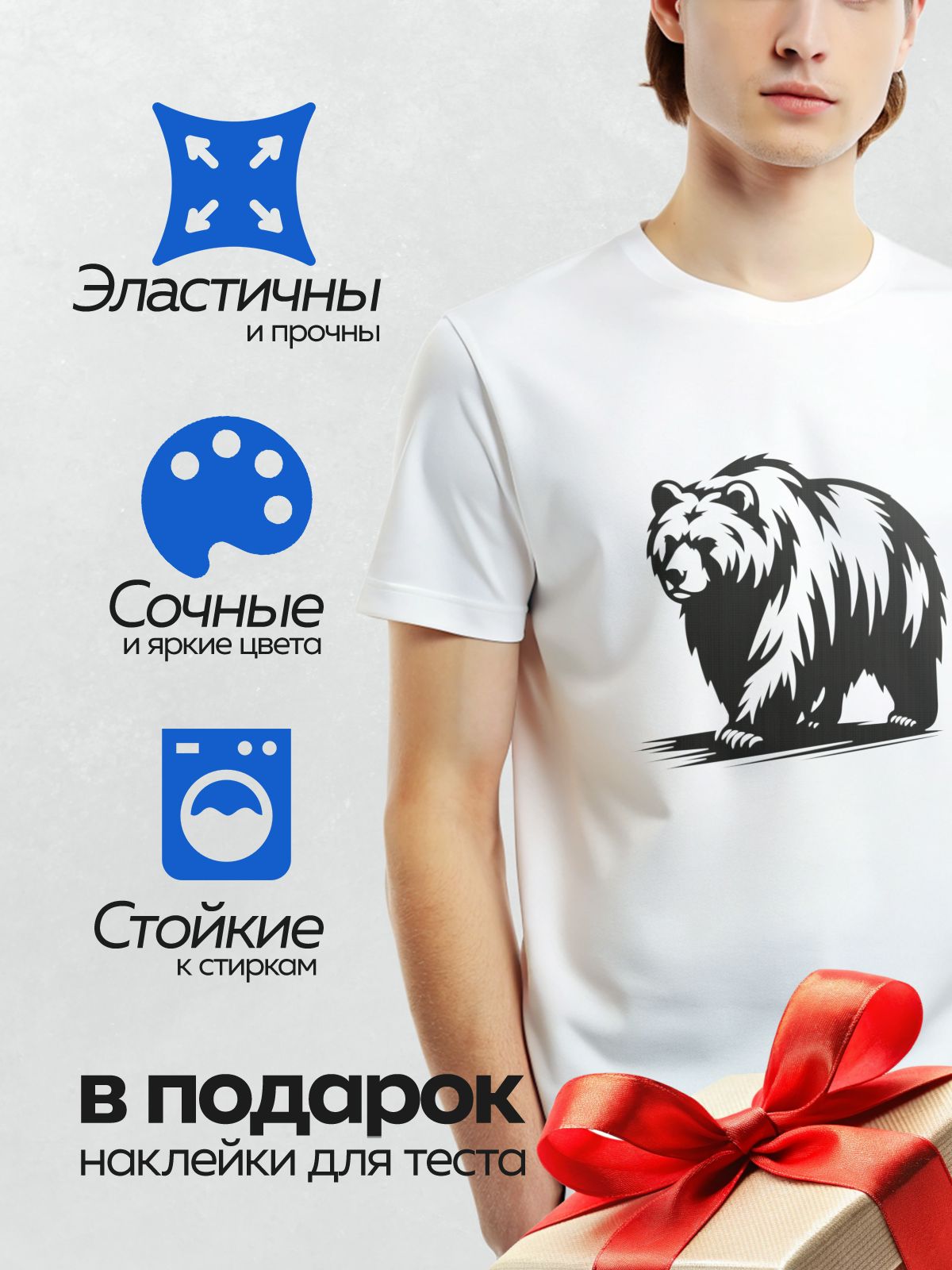 Дизайн: Стилизованный силуэт медведя в черно-белых тонах. — идеально подходит для декора и восстановления одежды.