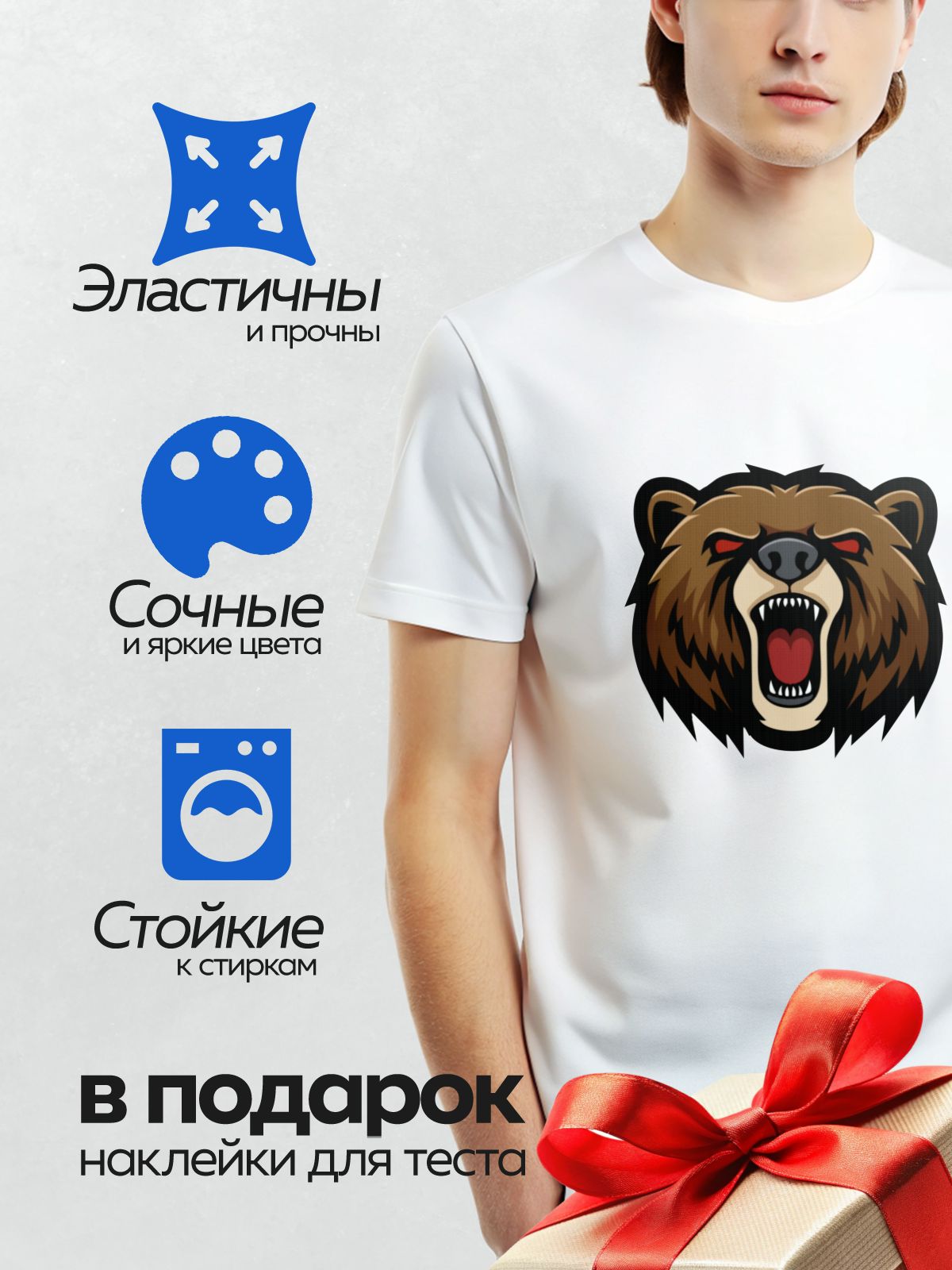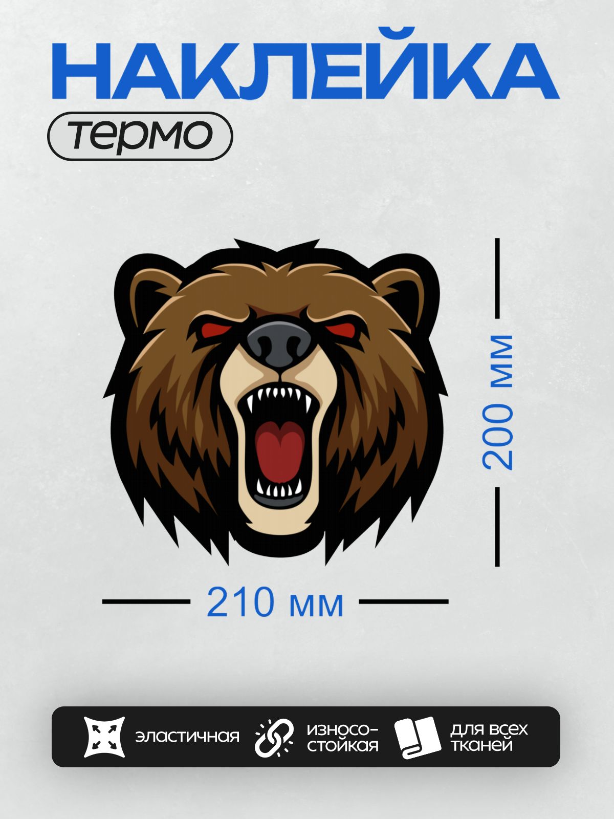 Термонаклейка на одежду DTF / Стилизованное изображение головы медведя с открытой пастью.