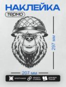 Дизайн: Стилизованный медведь в военной каске. — идеально подходит для декора и восстановления одежды.