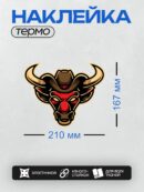 Дизайн: Стилизованная голова быка с красным сердцем на лбу. — идеально подходит для декора и восстановления одежды.
