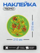 Термонаклейка на одежду DTF / Хохломская роспись с цветами, листьями и ягодами на зелёном фоне.