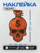Термонаклейка на одежду DTF / Череп в виде мешка с деньгами и знаком доллара.