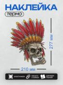 Дизайн: Череп в индейском головном уборе с яркими перьями. — идеально подходит для декора и восстановления одежды.