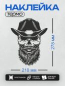 Термонаклейка на одежду DTF / Череп в ковбойской шляпе с густой бородой.