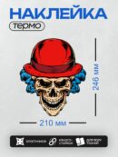 Дизайн: Череп в красной шляпе с яркими синими волосами. — идеально подходит для декора и восстановления одежды.