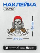 Термонаклейка на одежду DTF / Череп в красном шлеме, мотоцикл, надпись “Ride to life, life to ride”.