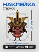 Дизайн: Череп в самурайском шлеме с золотыми элементами. — идеально подходит для декора и восстановления одежды.