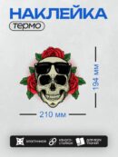 Дизайн: Череп в солнцезащитных очках, окружённый красными розами. — идеально подходит для декора и восстановления одежды.
