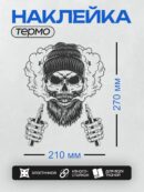 Термонаклейка на одежду DTF / Череп в шапке, с бородой, окружённый дымом и вейпами.