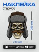 Термонаклейка на одежду DTF / Череп в шапке-ушанке с усами и золотыми зубами.