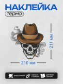 Дизайн: Череп в шляпе с сигарой и дымом. — идеально подходит для декора и восстановления одежды.