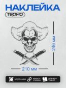 Термонаклейка на одежду DTF / Череп клоуна с перекрещенными ножами, черный дым.