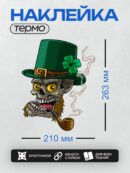 Дизайн: Череп лепрекона в шляпе с клевером и трубкой. — идеально подходит для декора и восстановления одежды.