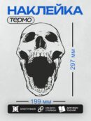 Дизайн: Череп с открытым ртом, стилизованный, черно-белый. — идеально подходит для декора и восстановления одежды.