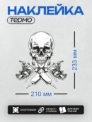 Дизайн: Череп с перекрещенными тату-машинками, детализированный. — идеально подходит для декора и восстановления одежды.