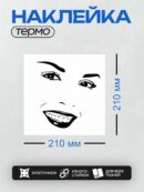 Дизайн: Черно-белое лицо женщины с яркой улыбкой и выразительными глазами. — идеально подходит для декора и восстановления одежды.