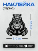 Дизайн: Черно-белый медведь в графическом стиле, сидящий на задних лапах. — идеально подходит для декора и восстановления одежды.