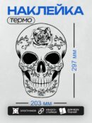 Дизайн: Черно-белый череп с розами и декоративными элементами. — идеально подходит для декора и восстановления одежды.