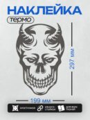 Дизайн: Черно-белый череп с рогами, стилизованный дизайн. — идеально подходит для декора и восстановления одежды.