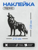 Термонаклейка на одежду DTF / Черно-белый силуэт волка, воющего на луну.