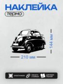 Термонаклейка на одежду DTF / Черно-белый силуэт BMW Isetta в движении.