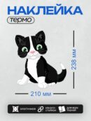 Дизайн: Черно-белый мультяшный котенок с большими зелеными глазами. — идеально подходит для декора и восстановления одежды.