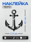 Термонаклейка на одежду DTF / Черный якорь с канатом на белом фоне.