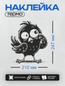 Дизайн: Чёрная мультяшная птица с большими глазами и поднятым крылом. — идеально подходит для декора и восстановления одежды.