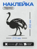 Термонаклейка на одежду DTF / Чёрный силуэт страуса на белом фоне.