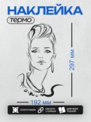 Термонаклейка на одежду DTF / Элегантная женщина с короткой стрижкой и серьгами, надпись ‘Fashion’.