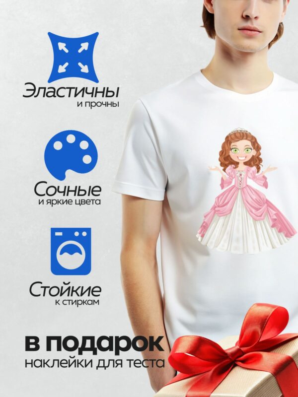 Термонаклейка на одежду DTF / Мультяшная принцесса в розовом платье с диадемой.