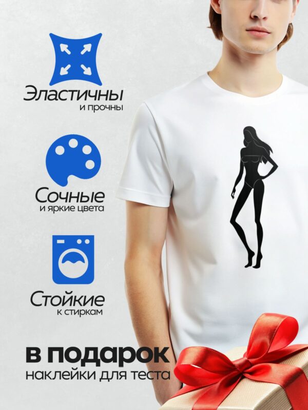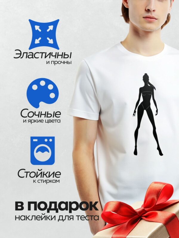 Термонаклейка на одежду DTF / Силуэт стройной девушки в купальнике, черный контур.