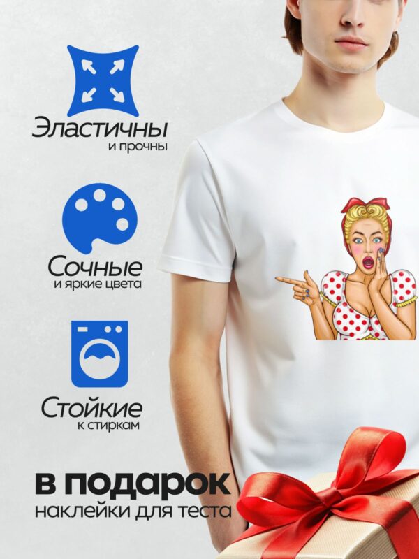 Термонаклейка на одежду DTF / Девушка в стиле поп-арт с удивлённым выражением лица.
