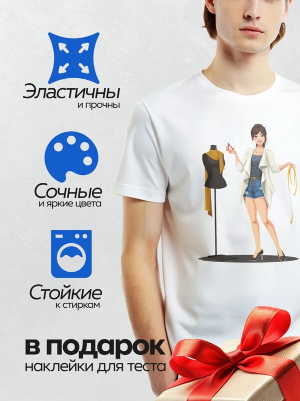 Термонаклейка на одежду DTF / Девушка-дизайнер с ножницами и сантиметровой лентой.