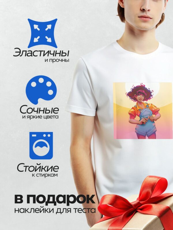 Термонаклейка на одежду DTF / Девушка в стиле поп-арт с кудрявыми волосами.