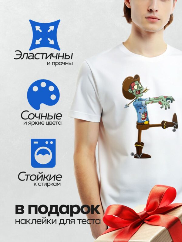 Термонаклейка на одежду DTF / Мультяшный зомби-ковбой с рваной одеждой и стрелой в голове.