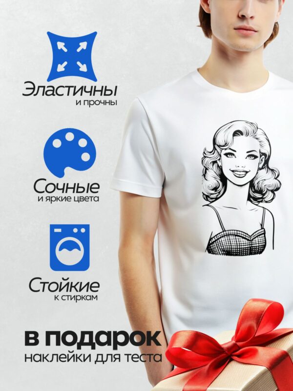 Термонаклейка на одежду DTF / Девушка с волнистыми волосами в стиле ретро, улыбающаяся.