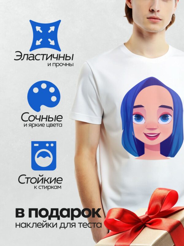 Термонаклейка на одежду DTF / Девушка с синими волосами и голубыми глазами, яркая улыбка.