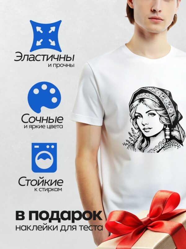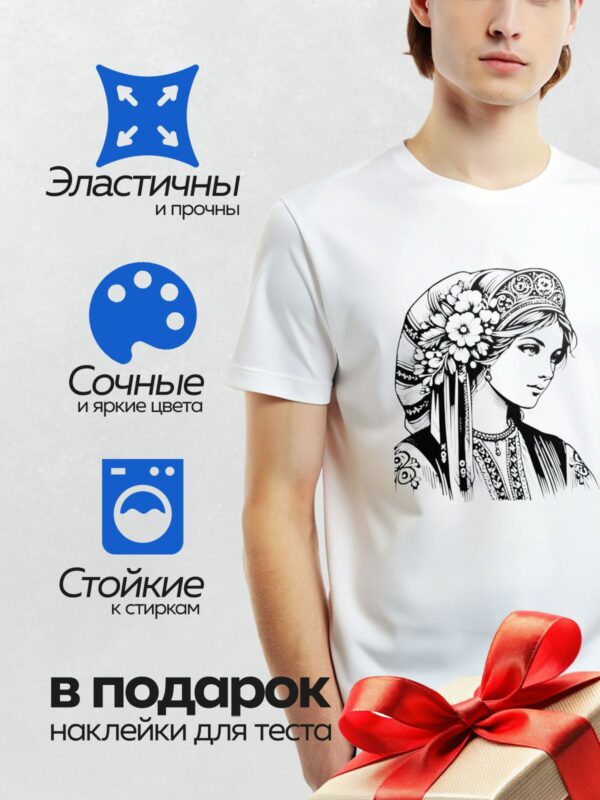 Термонаклейка на одежду DTF / Девушка в русском национальном костюме с венком из цветов.