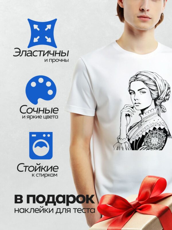 Термонаклейка на одежду DTF / Женский портрет в старинном стиле с платком и вышивкой.