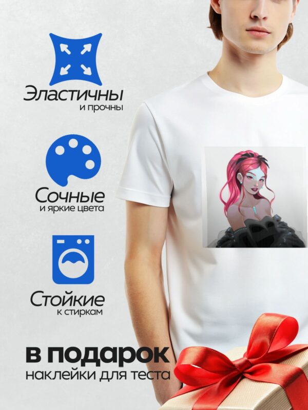 Термонаклейка на одежду DTF / Рыжеволосая девушка с украшениями и ярким макияжем.