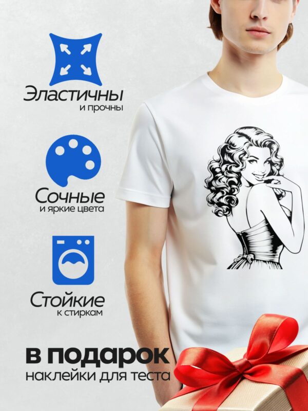 Термонаклейка на одежду DTF / Ретро-девушка в стиле пин-ап с волнистыми волосами.