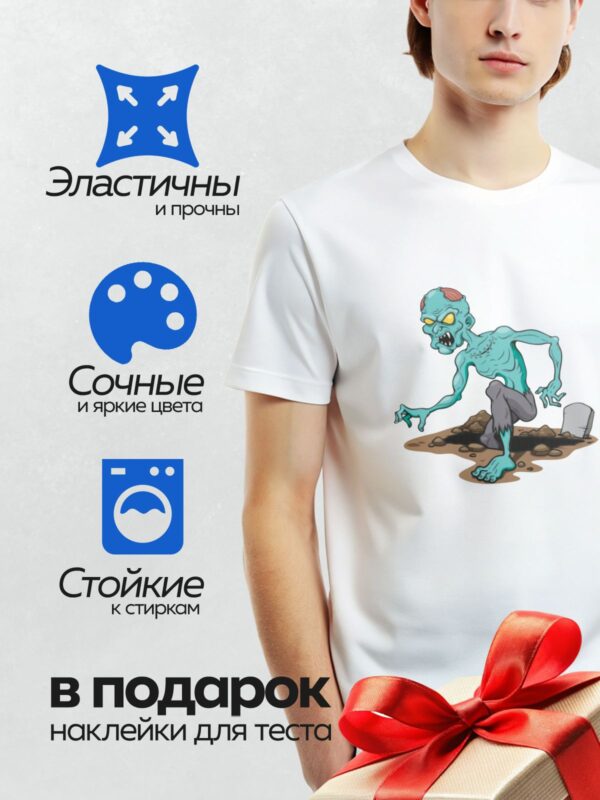 Термонаклейка на одежду DTF / Мультяшный зомби вылезает из могилы.