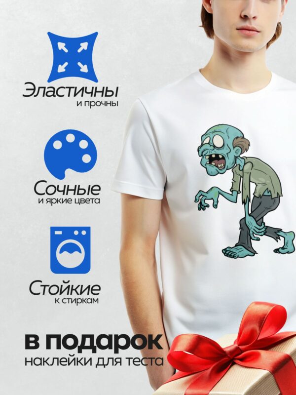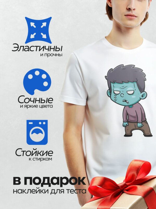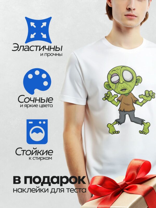 Термонаклейка на одежду DTF / Мультяшный зомби с серой кожей и жёлтыми глазами.
