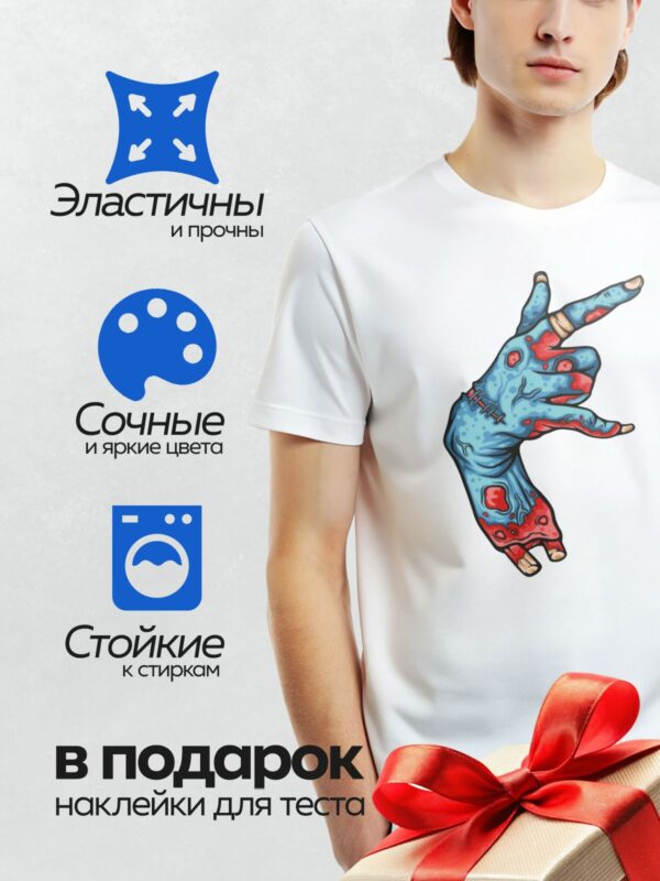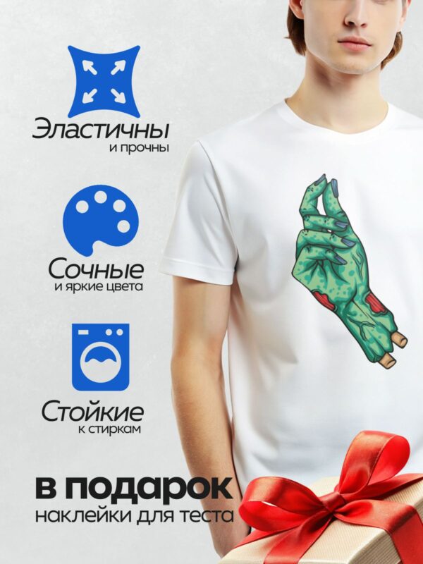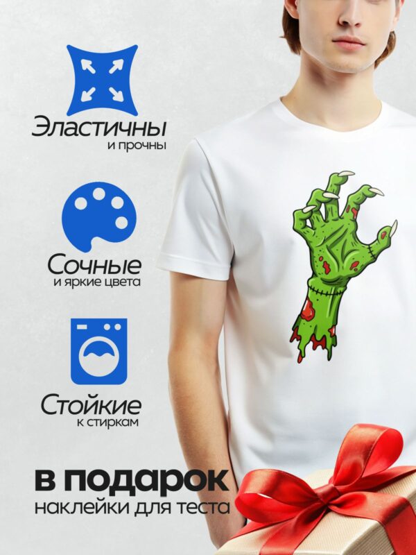 Термонаклейка на одежду DTF / Мультяшная рука зомби с длинными пальцами и швами.